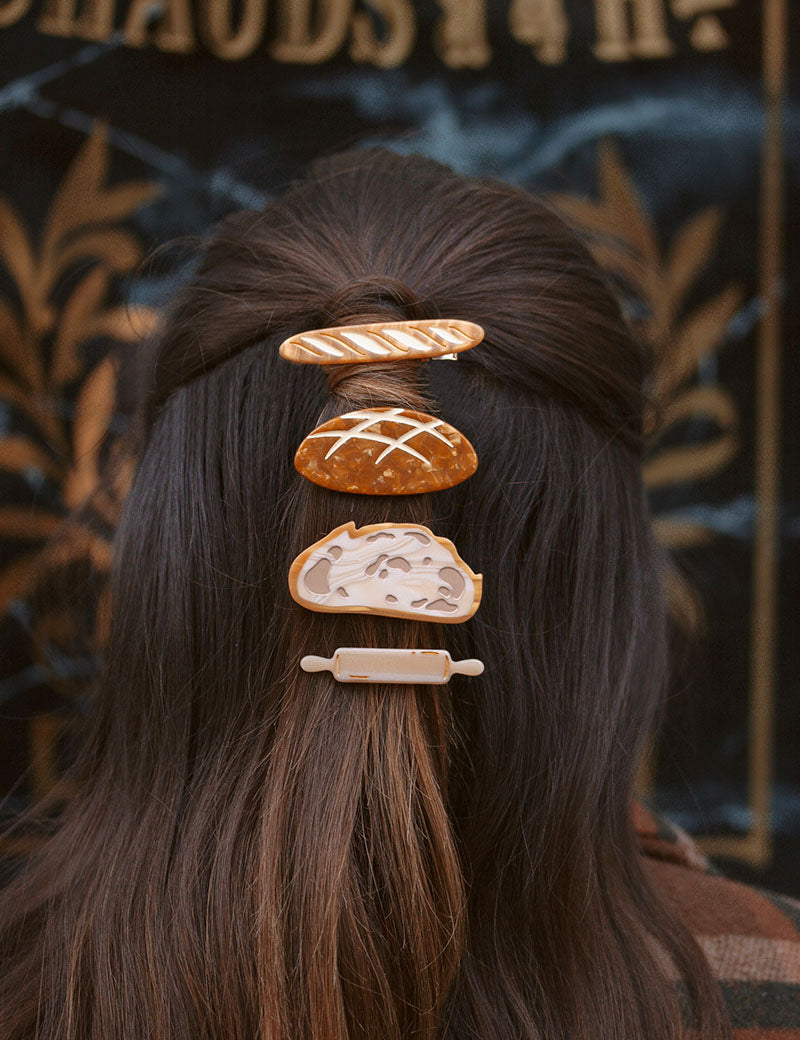 Enhance your hairstyle with these chic baguette hair clips, available individually or as a set! Perfect for adding Parisian flair, they're a must-have for lovers of unique hair pieces. Crafted with style and durability, they embellish braids, buns, or half-updos and hold those annoying baby hairs perfectly! Infuse your look with French sophistication and transport yourself to a Parisian café! Shop now to add this playful yet elegant piece to your collection!