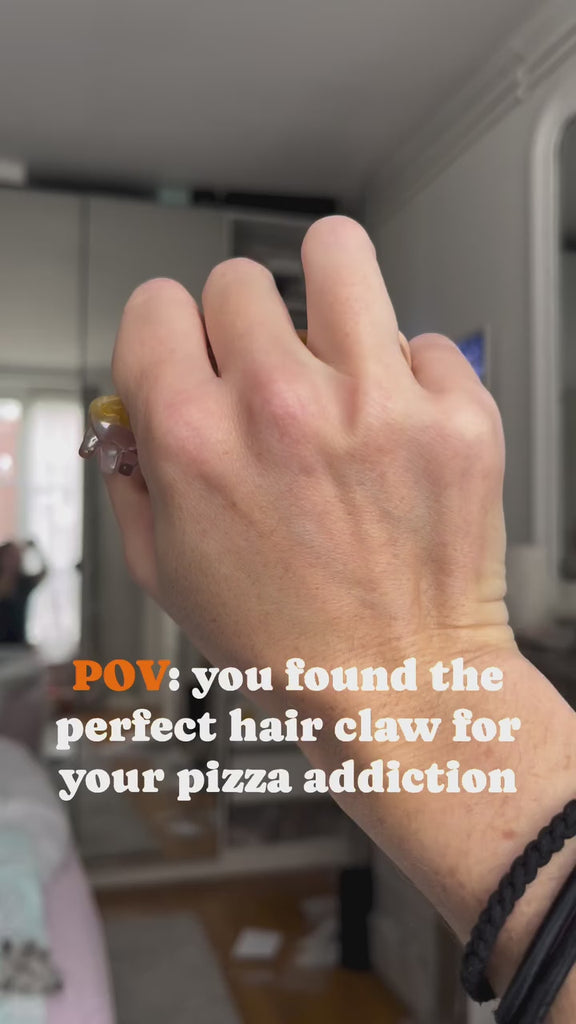 If you were looking to add some cheesy charm to your hairdo... Look no further! Whether you're a pizza lover or just a fan of whimsical accessories, this Hair Claw will serve up a slice of fun to any outfit.